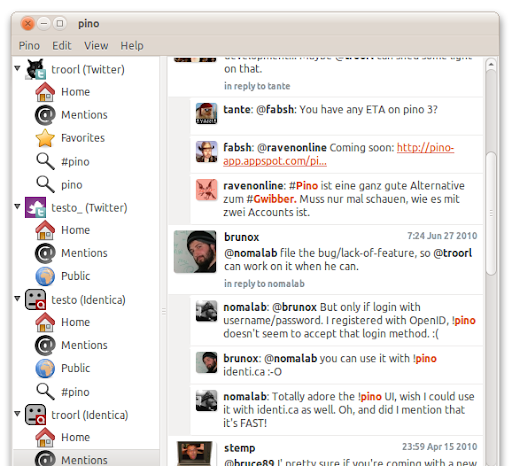 Come sapete il client twitter Pino ha subito una piccola botta di arresto a seguito del cambio di regole da parte di twitter. L’autore del programma ha deciso di cogliere la palla al balzo e modificare l’interfaccia grafica del client.